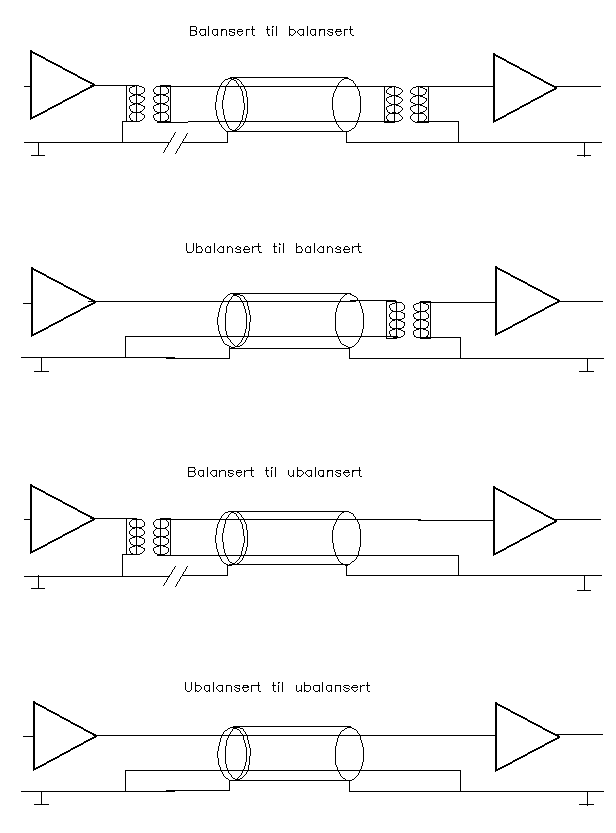Det er verdt å merke seg at signalet reduseres med 3 db i overgangen fra balansert til ubalansert.