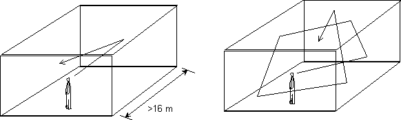 I et rom som er større avstand enn 16 m, til en slett hård vegg, vil gi et klart ekko. Dette kan være svært sjenerende, slike vegger bør dekkes med porøse materialer.