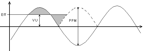 Til en enkel kanal brukes VU-meter og PPM-meter.