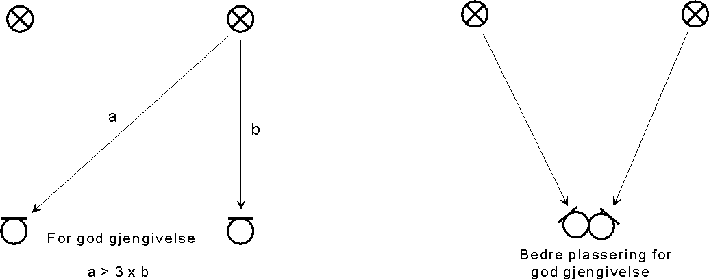2 kHz er det kun nivået som forteller oss retningen. Toner over 6 kHz er det vanskelig å bestemme retningen på innendørs p.g.a. refleksjoner.